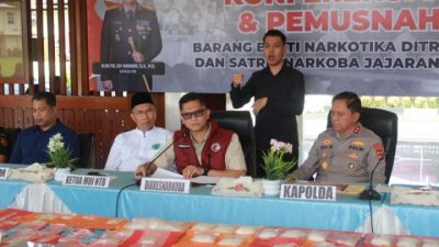 Mataram [Penasilet,com] Polda NTB menggelar konferensi pers sekaligus pemusnahan barang bukti narkotika, hasil pengungkapan Ditresnarkoba…