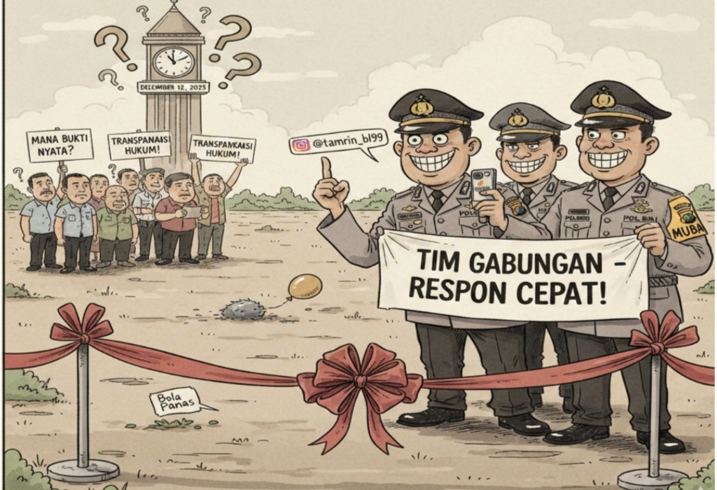 Hingga berita ini diterbitkan Jum’at (12/12/2025) belum ada penjelasan dari pihak Polda Sumsel, apakah Tim Gabungan yang dimaksud telah terbentuk ataupun sudah mulai bekerja.”(Red)”.