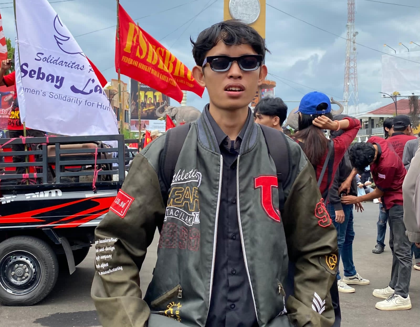 Fauzan Panggilan akrab Fauzan Arrasyid Nurwansyah saat dikonfirmasi mengatakan, kehadirannya beserta mahasiswa lainnya tidak lain dalam rangka ikut partisipasi melakukan aksi damai memperjuangkan nasip para buruh.