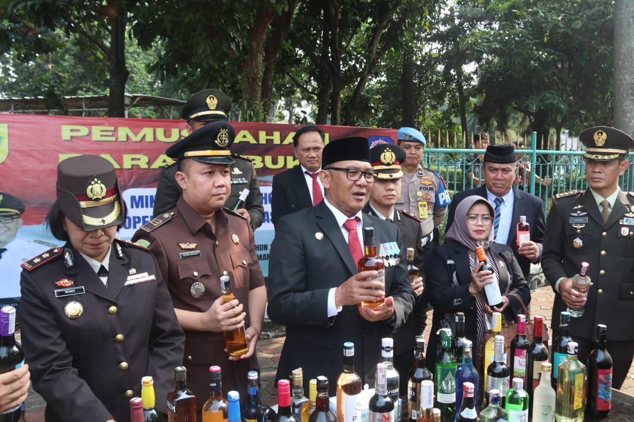 Bupati Bogor, Iwan Setiawan Dan Jajaran Polres Bogor Polda Jabar Musnahkan 6.000 Botol Miras Hasil Razia Nobat