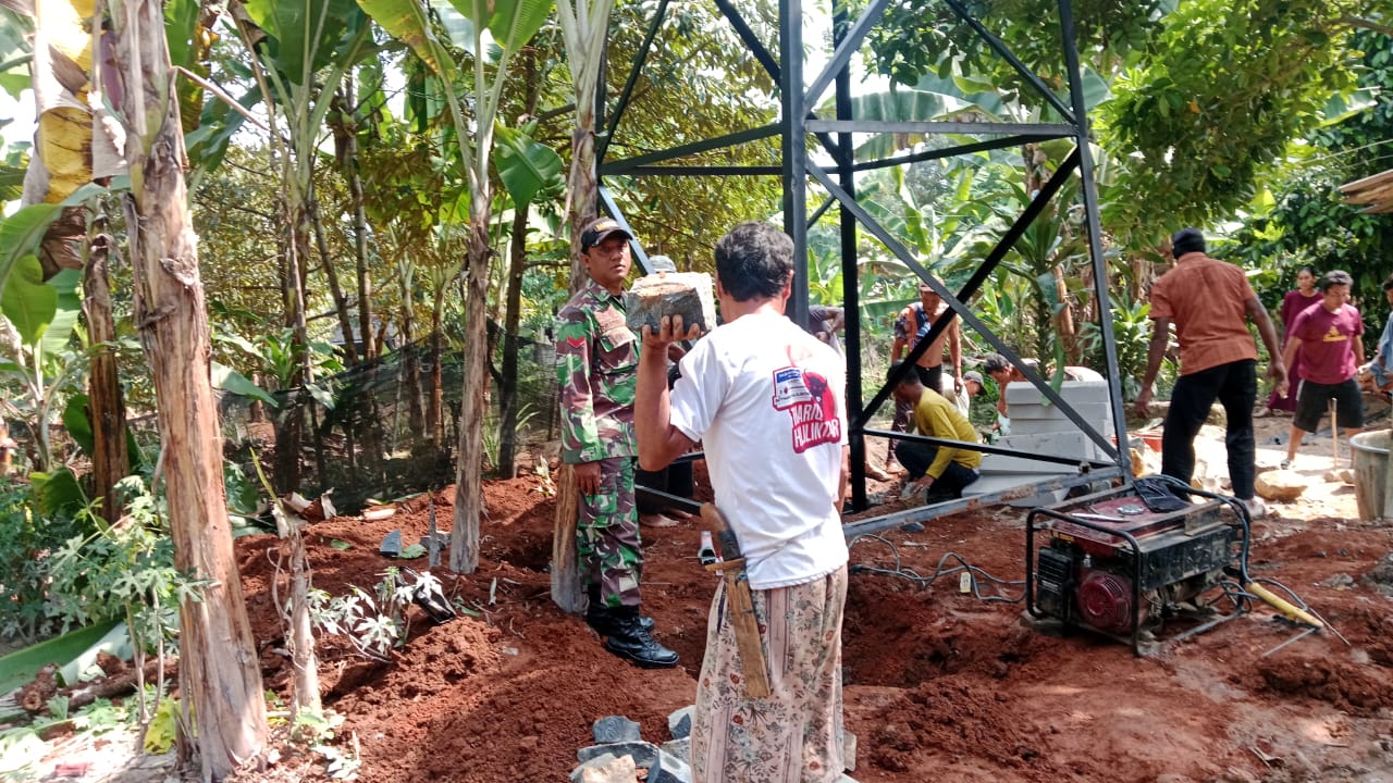 Koptu Ridwan Babinsa Desa Sukadamai anggota TNI Koramil 0621-09 Sukamakmur membantu dalam pembuatan sumur Bor yang berlokasi di Kampung pasir ipis RT.03/07, Desa Sukadamai.