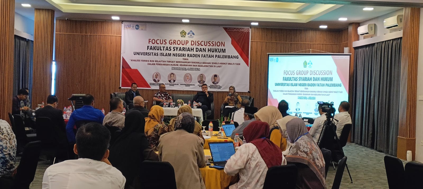 Penasilet.com. Palembang,- Focus Group Discussion ( FGD) Fakultas Syariah dan Hukum Universitas Islam Negeri Raden Fatah Palembang dengan tema ” Analisis Yuridis RUU Kelautan Terkait Kewenangan Bakamla sebagai Single Agency Multi Task Dalam Penegakkan Hukum, Keamanan dan Keselamatan di Laut ” di gelar di Hotel Airish Sukabangun Palembang, Kamis ( 4/7/2024).