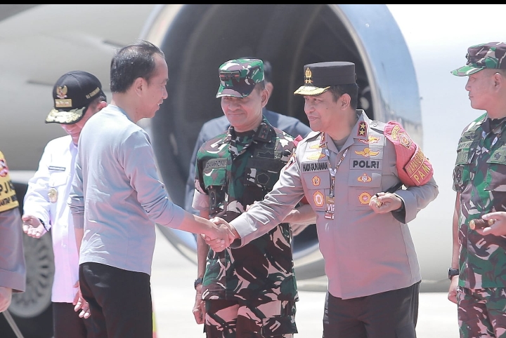 Lombok, NTB – Penasilet.com – Presiden Joko Widodo tiba di Bandara Internasional Lombok (BIL) pada pukul 12.45 WITA, Sabtu (29/9/2024), guna menghadiri puncak perhelatan MotoGP 2024 di Pertamina Mandalika International Circuit. Setibanya di Lombok, Presiden Jokowi disambut hangat oleh Kapolda NTB Irjen Pol. Hadi Gunawan, yang mendampingi Kapolri Jenderal Listyo Sigit Prabowo dan Panglima TNI Agus Subiyanto.