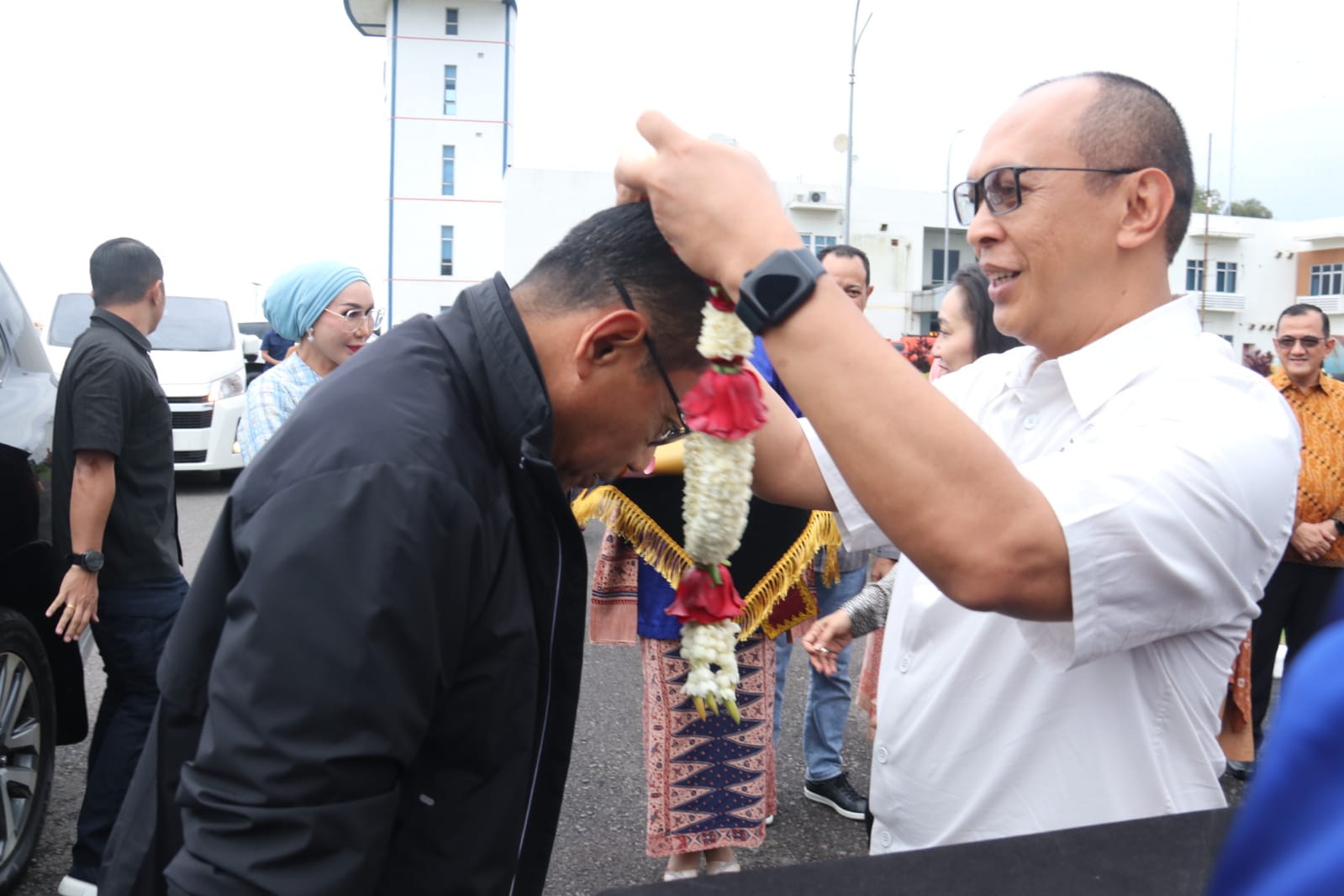Namun sebelumnya, ada yang menarik dalam kedatangan perdananya sebagai Kapolda Sumsel tersebut, di mana saat baru turun dari mobil penjemputan dibandara, ia langsung disambut Waka BSSN RI Komjen Pol A.Rachmad Wibowo, SIK sekaligus pengalungan bunga sebagai penghormatan kepada tamu yang baru datang