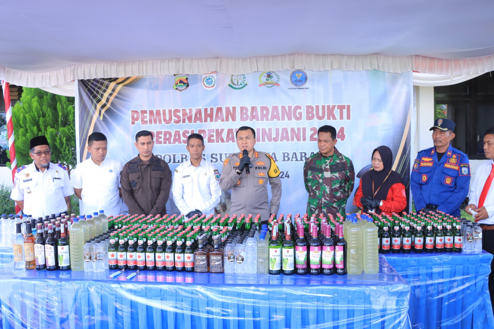 Polres Sumbawa Barat antara lain kawa kawa 36 botol Drum 12 botol, arak desa ukuran kecil 60 botol, Soju 9 botol, akrab 12 botol ukuran kecil, arak ukuran sedang 63 botol, Brem 75 botol, tuak 24 botol, biar bintang 450 botol,anggur merah 25 botol, anggur merah gold 1 botol, anggur merah mcdonal 12 botol, anggur merah kolesom 1 botol, biar hitam 22 botol, bir redler 25 botol, dengan total semua sejumlah 826 botol atau 363,78 liter,” Kata Kapolres Sumbawa Barat AKBP Yasmara Harahap S.I.K melalui Kasi Humas IPDA Edi Sobandi Adireja, S.Sos kepada media ini.