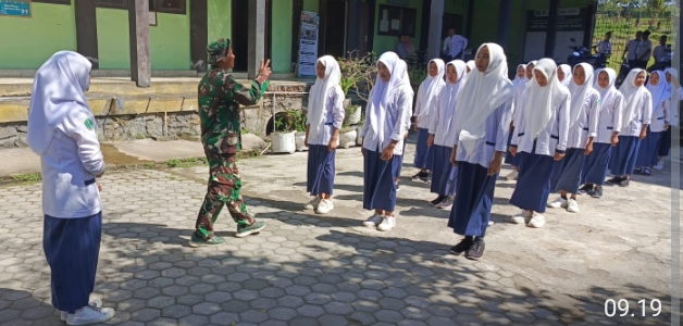 Kodim 1615/Lombok Timur Laksanakan Pelatihan PBB Untuk Siswa SMK Bajang NWDI Ajan Dalam Rangka Kegiatan Non Fisik TMMD Ke-121