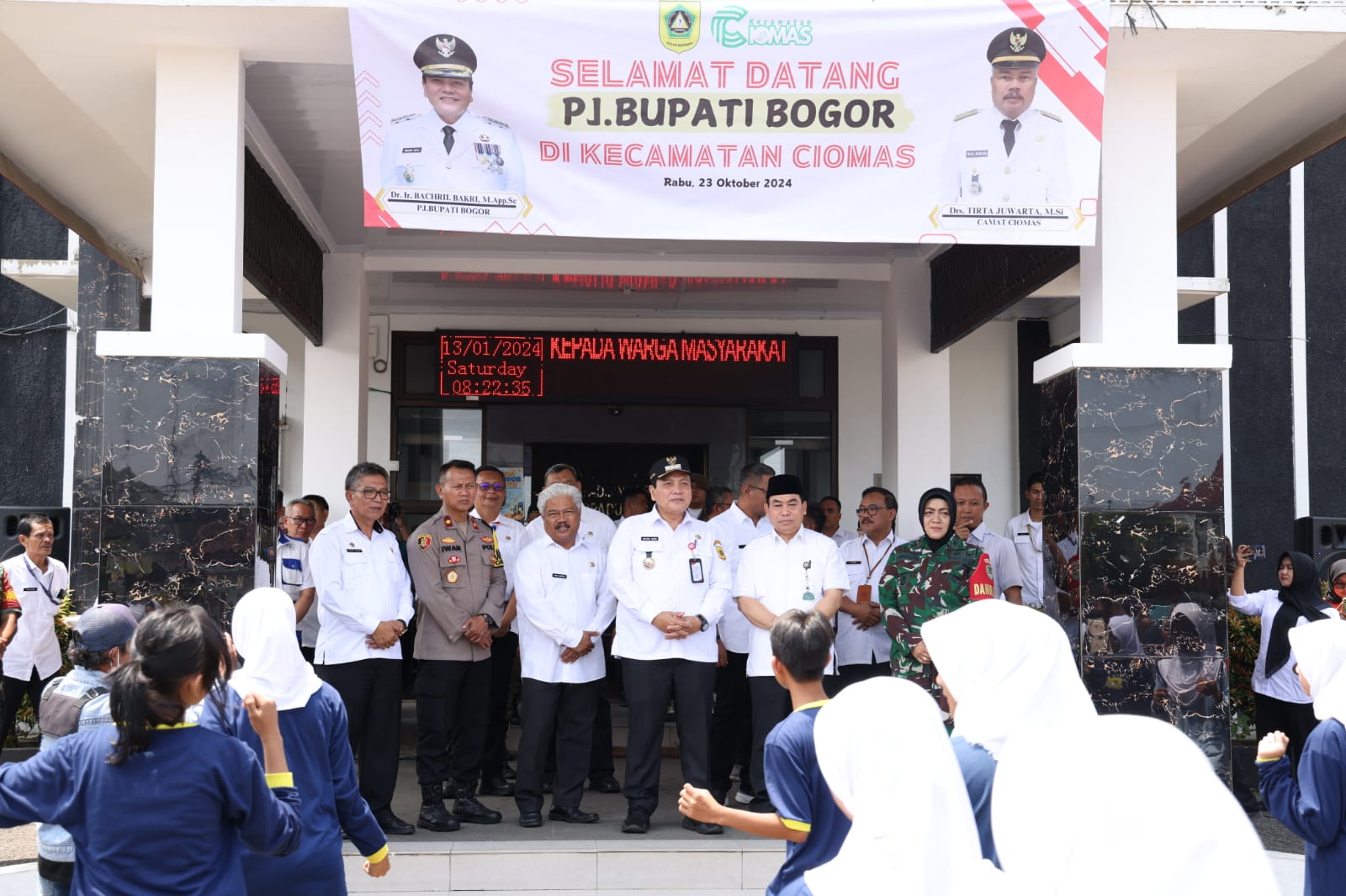 Di tempat yang sama, Camat Ciomas Tirta Juwarta menyatakan, kehadiran Pj. Bupati Bogor di wilayah Kecamatan Ciomas tentunya memberikan semangat baru bagi masyarakat Ciomas untuk bersama-sama mendorong tercapainya target-target yang ditentukan Pemerintah Kabupaten Bogor. Baik stunting, penyelenggaraan Pilkada damai juga penanganan bencana.