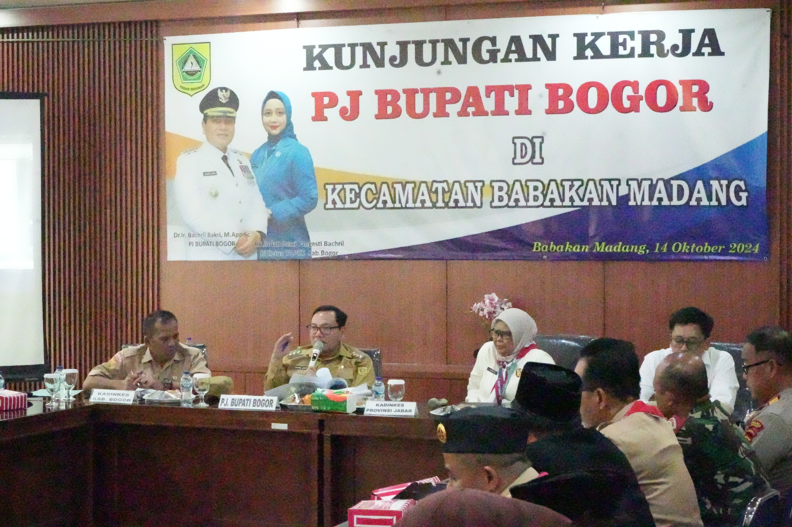 Pj. Bupati Bogor didampingi Kepala Dinas Sosial, Plt. Kepala Dinas Kesehatan, Kepala Dinas Kependudukan dan Catatan Sipil. Hadir Camat dan Forkopimcam Babakan Madang, para Kepala Desa se-Kecamatan Babakan Madang, Ketua TP PKK Kecamatan dan Desa, para Kepala Puskesmas. Turut Hadir Kepala Bidang Sumber Daya Kesehatan (SDK) Dinkes Provinsi Jawa Barat, perwakilan Bappeda, BKKBN, DPMD Provinsi Jawa Barat.
