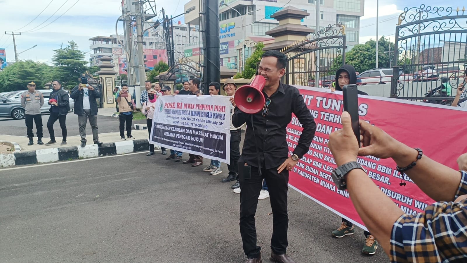 Aksi massa mendesak Kapolda untuk menindak pasar gelap BBM ilegal yang terjadi di seluruh Kabupaten Muara Enim yang sekarang sudah menggurita dan dan Perdagangan gelap BBM ilegal di Kabupaten Muara Enim.