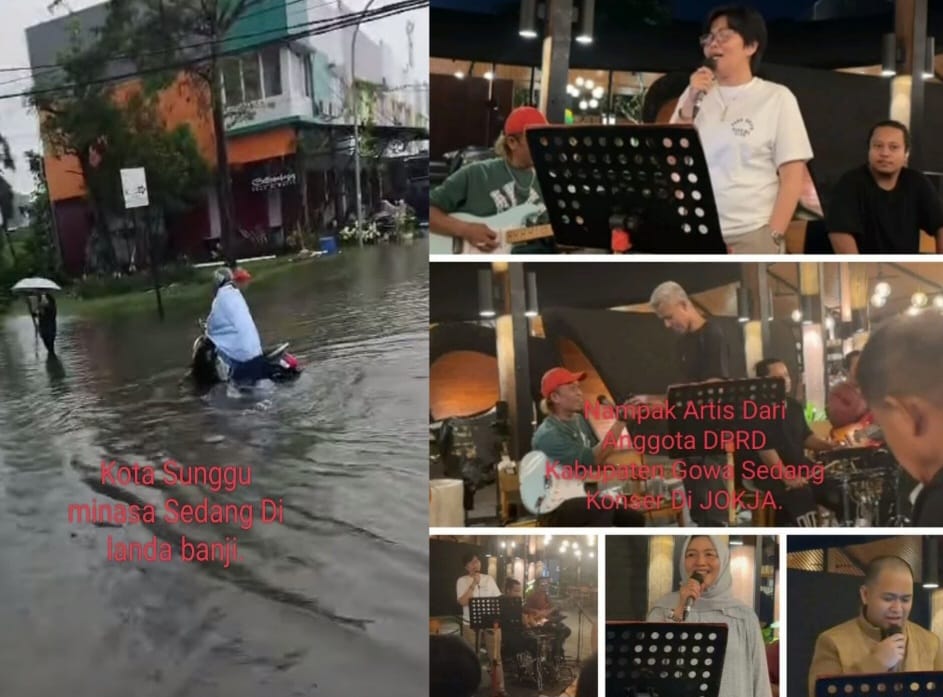 “Lagi enak nyanyi di kafe di Jogja, warga Gowa mengalami musibah banjir bandang. Bukan turun melihat kondisi, malah santai di luar daerah,” ujarnya, Selasa (3/3/2026).