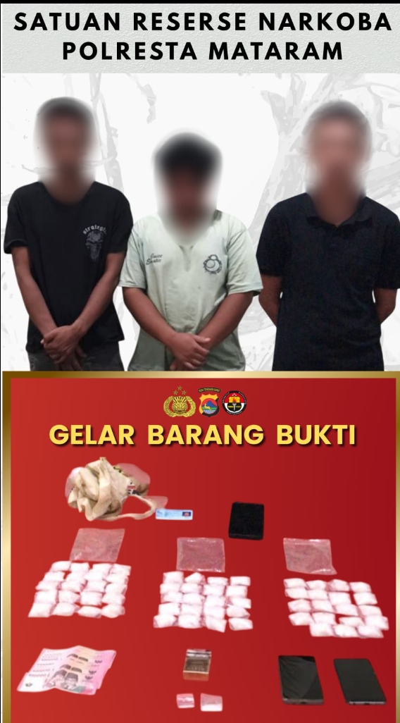 Dari pengungkapan ini Tiga Pria terduga pelaku RT (45), TA (19) dan AH (21) warga kecamatan Narmada Lombok Barat diamankan beserta barang bukti Sabu seberat 330,95 gram brutto.