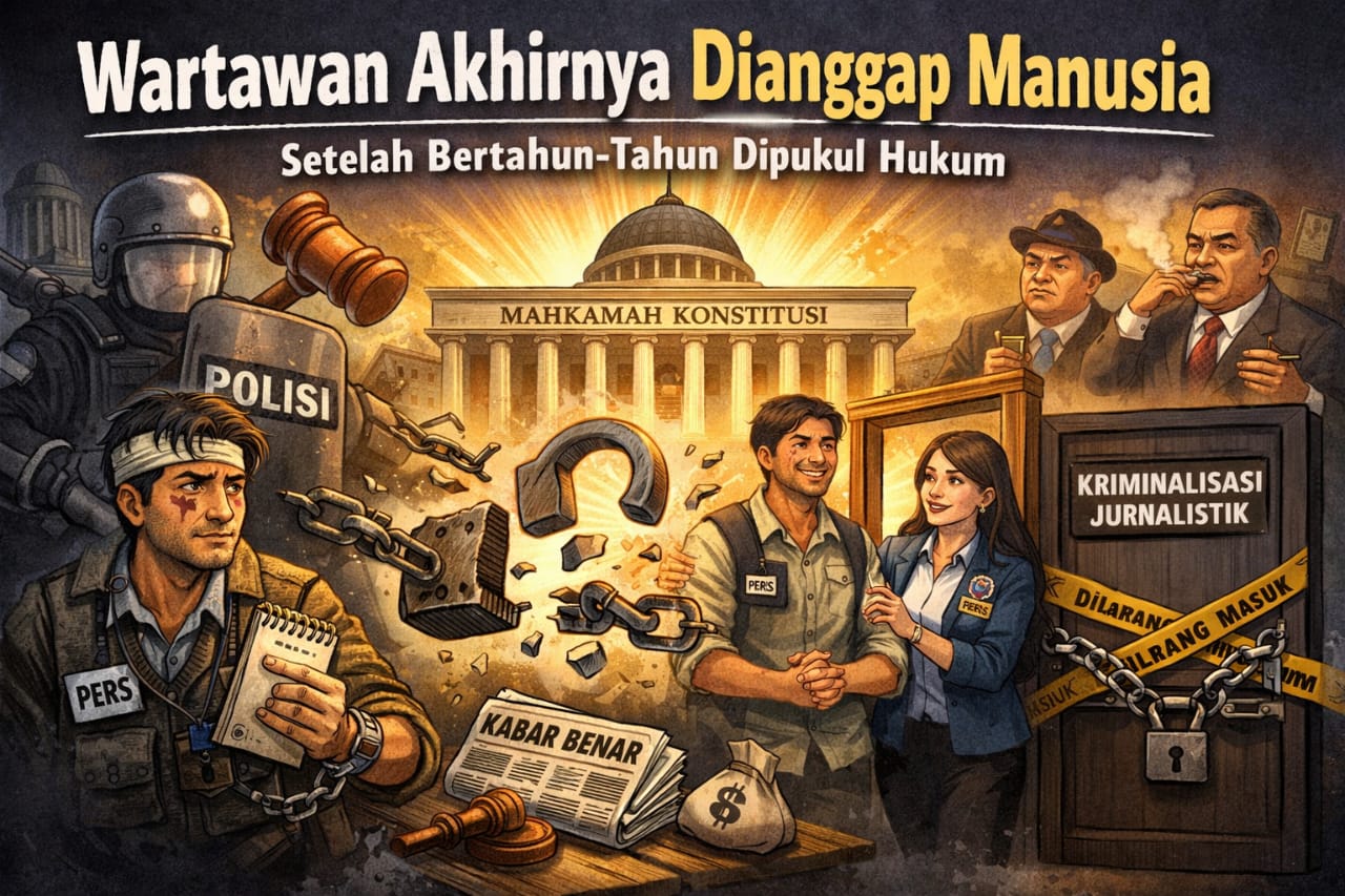 Selama bertahun-tahun, wartawan hidup dalam status “tersangka cadangan.” Salah kutip sedikit, pidana. Mengungkap skandal, digugat. Menjalankan fungsi kontrol sosial, justru dikontrol balik, oleh aparat, oleh penguasa, oleh pemilik modal, dan oleh siapa pun yang merasa kekuasaannya gatal jika disentuh transparansi.